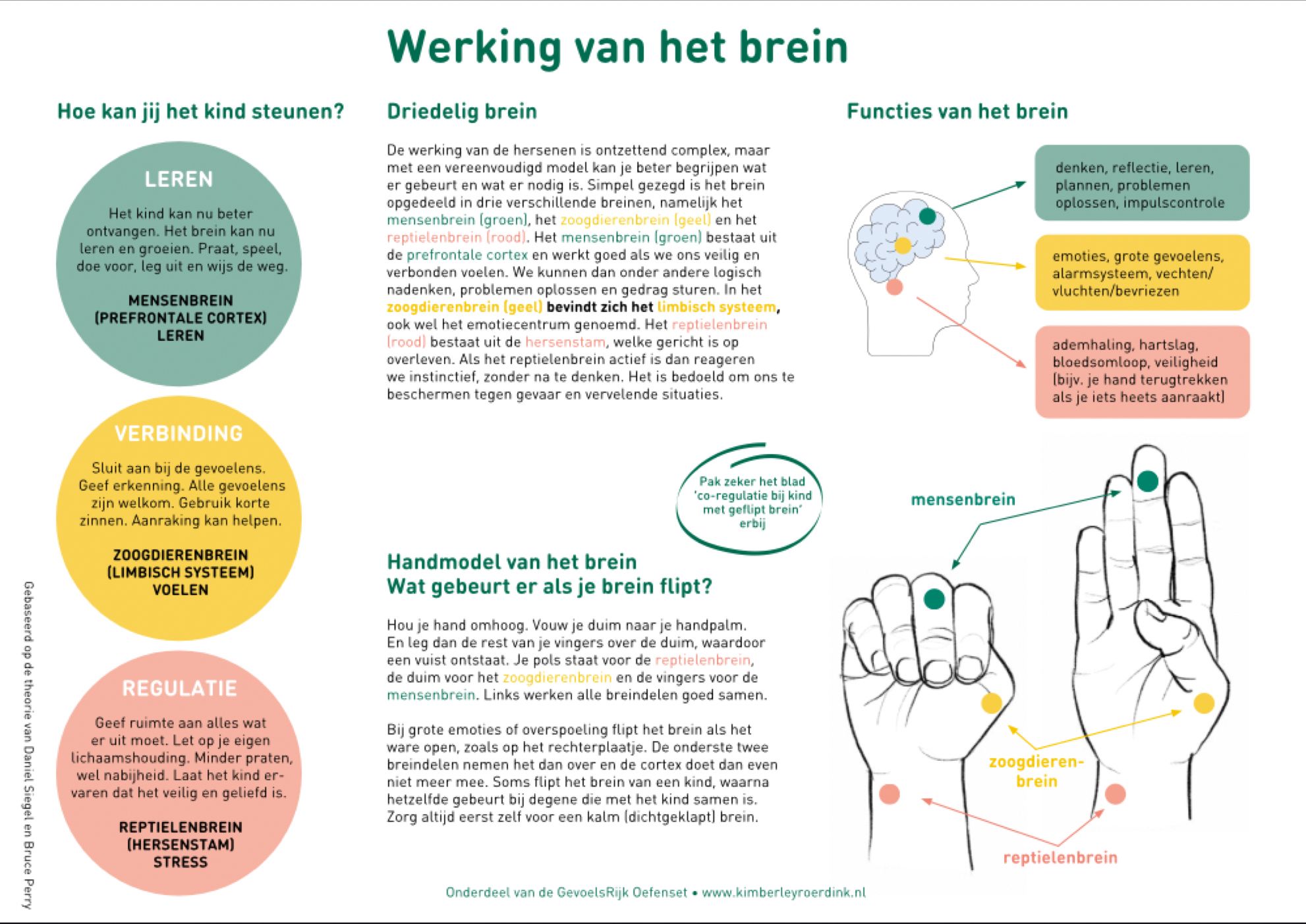Infografic van het handmodel van het brein, om een leerling te ondersteunen bij stress