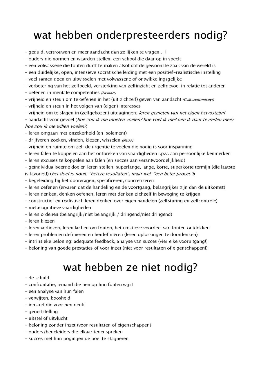 korte beschrijving onderpresteren op 1 A4 door Jan van Os